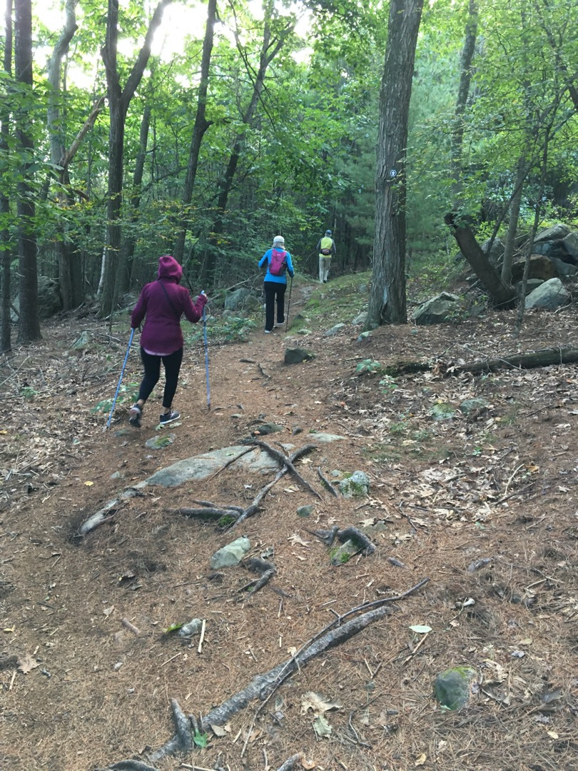 The four of us started the hike @8am. It was a clear, chilly and crisp New-England Fall morning in the low 50F’s. The views from Elephant Rock were spectacular as always. The Fall colors were not quite as vivid but it always brings me tremendous peace to look out at this gorgeous 3rd rock from the Sun. The trail was a bit wet and mucky at spots but nothing that the group could not tackle with the Nordic-Walking Poles.