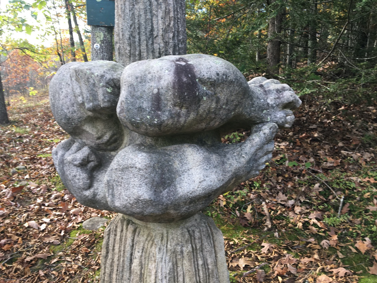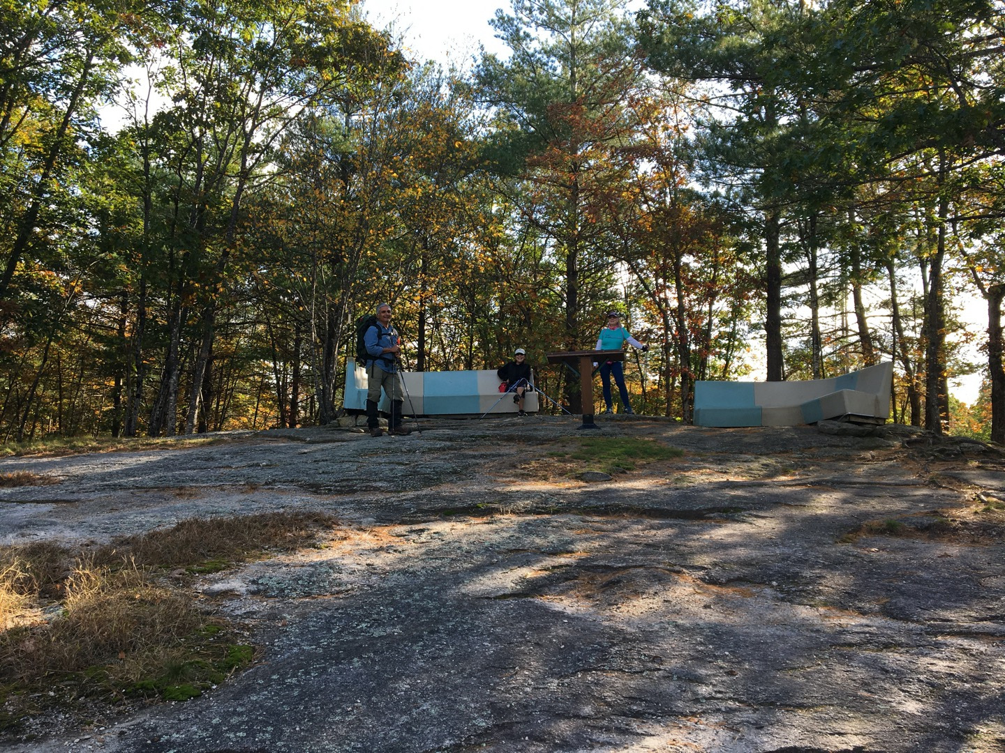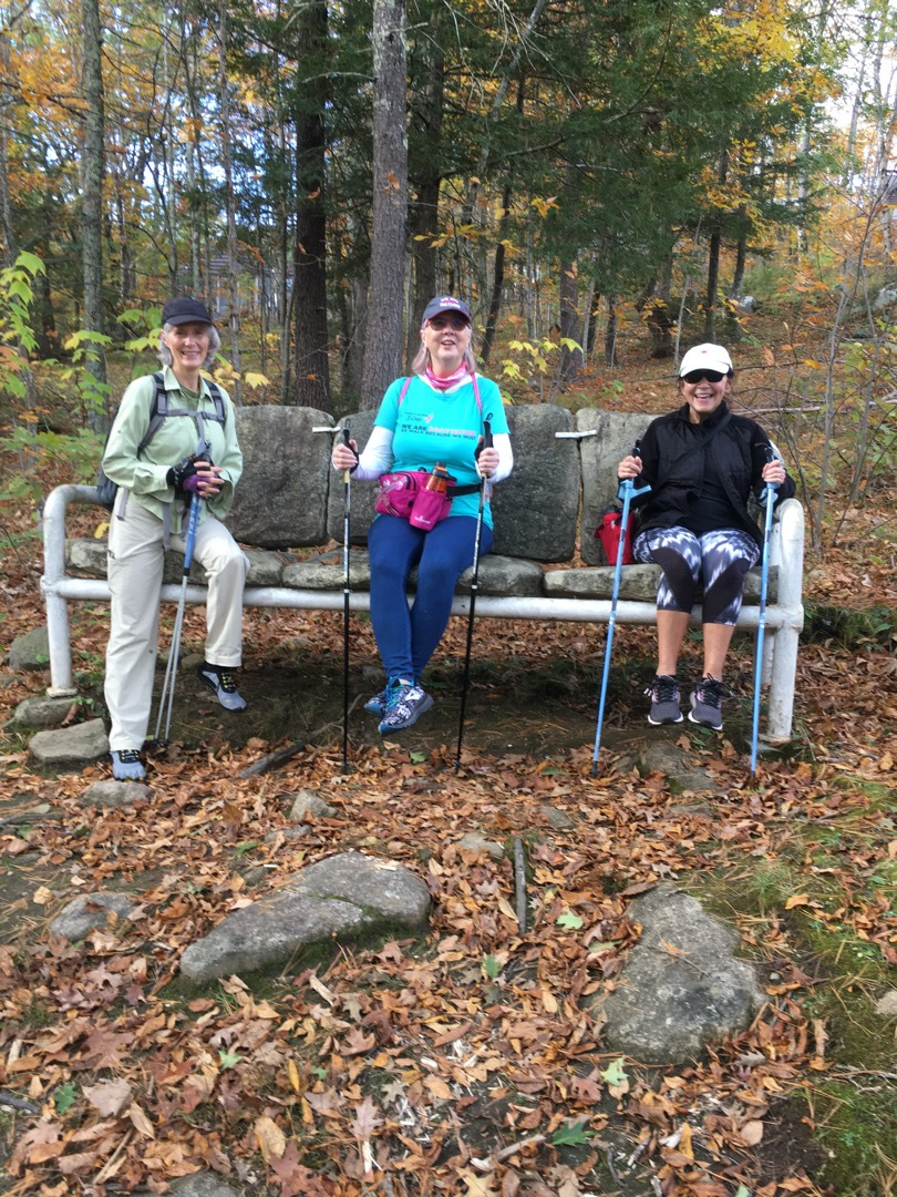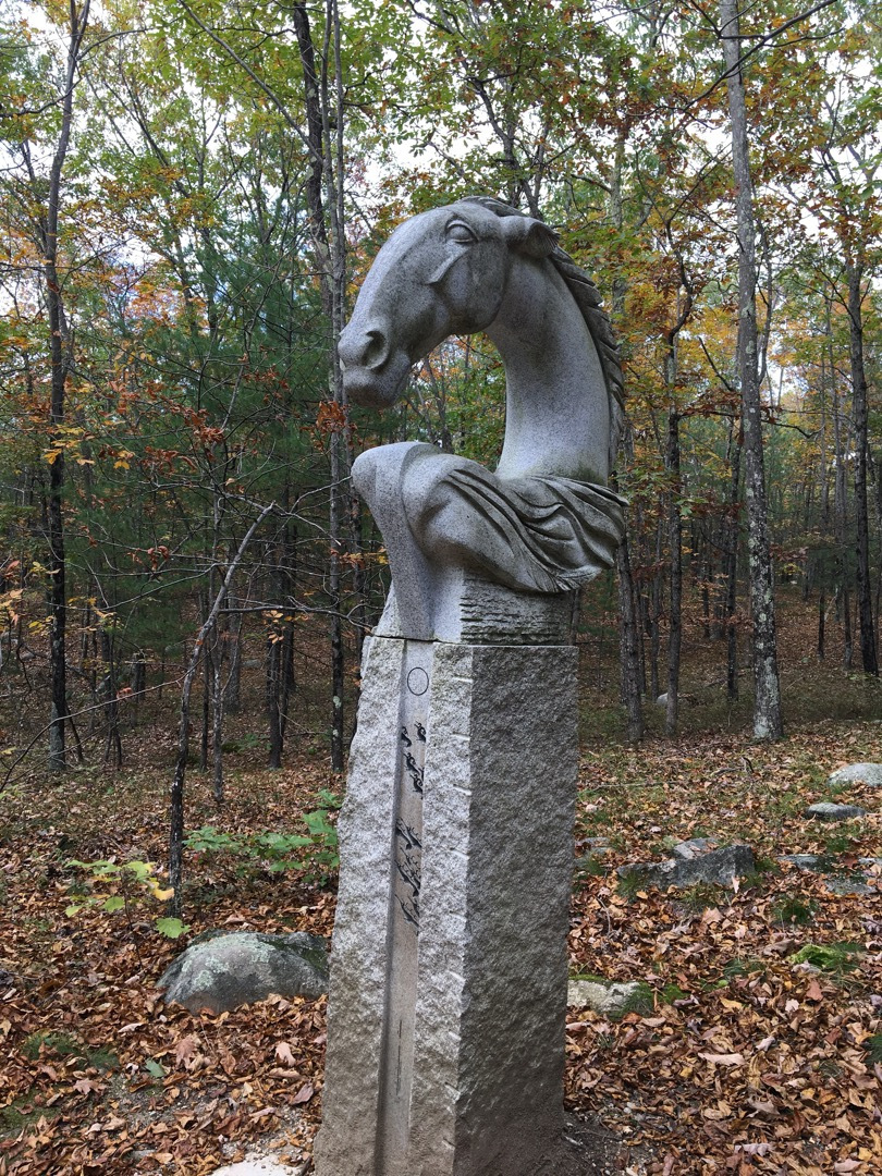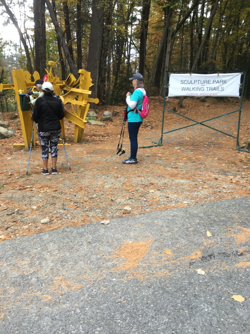 This was another crispy and clear, typical gorgeous New-England day. 50F’ish and cool. We Nordic-Walked up a nice steep hill, right next to the entrance. This got our blood pumping and we were no longer cold. We walked about 2mi in about 2-1/2 hours. Of course stopping to admire the art pieces along the way. We stopped to have snacks at the top of the Hill next to the Cell Tower. The vista provided spectacular views of the Monadnock Region. The Fall Foliage always takes my breath away.